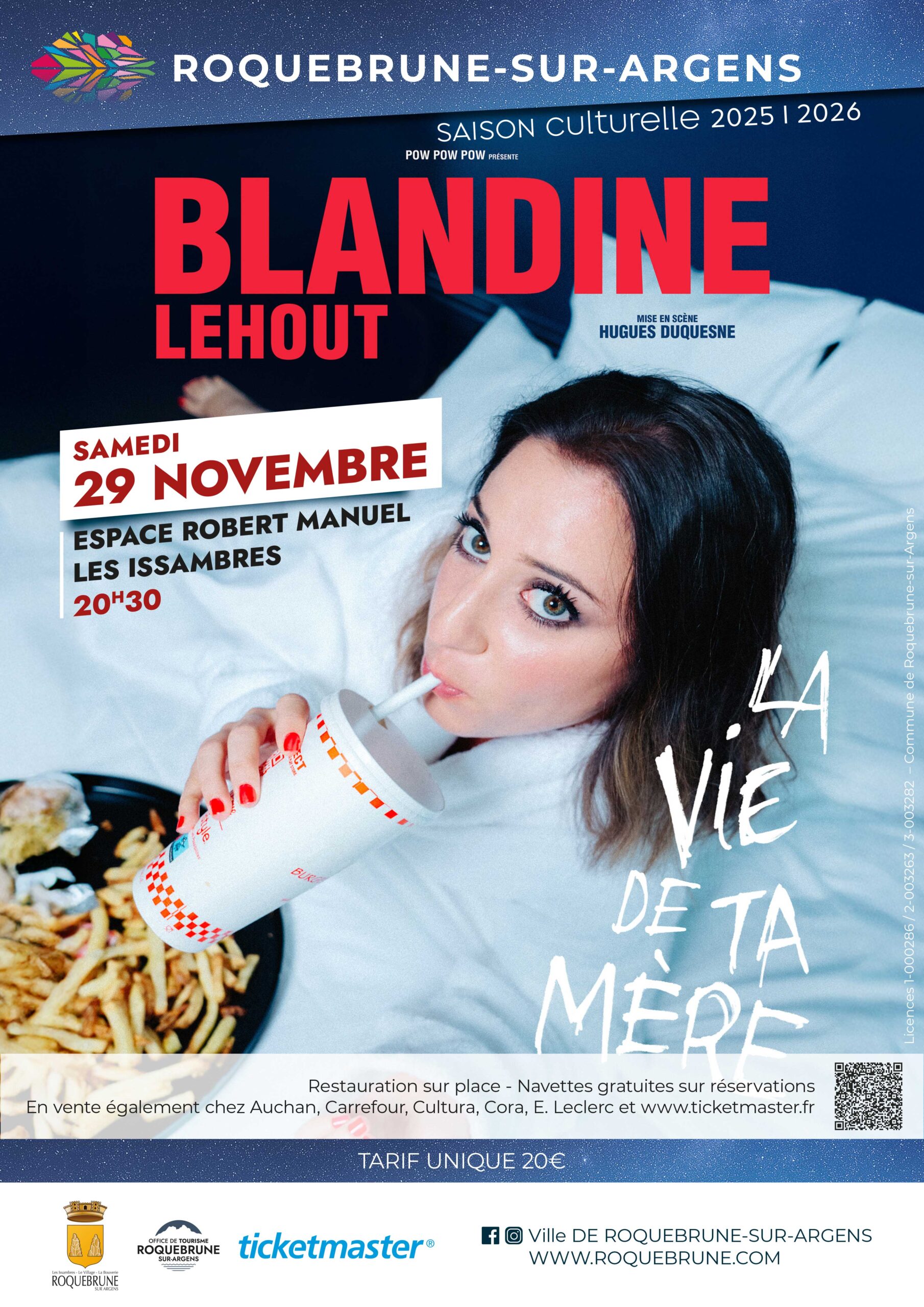 > Navettes gratuites sur réservation uniquement par téléphone les lundis, mardis et mercredis de 9h à 12h au 04 94 19 59 55 ou saisonculturelle@mairie-roquebrune-argens.fr