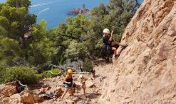 Gli istruttori del CAMP4 vi accolgono al Port du Poussaï per scoprire la VIA CORDATA e il DESCENTE EN RAPPEL. Il percorso si snoda sul mare e offre una vista eccezionale sulle calanche di Dramont.